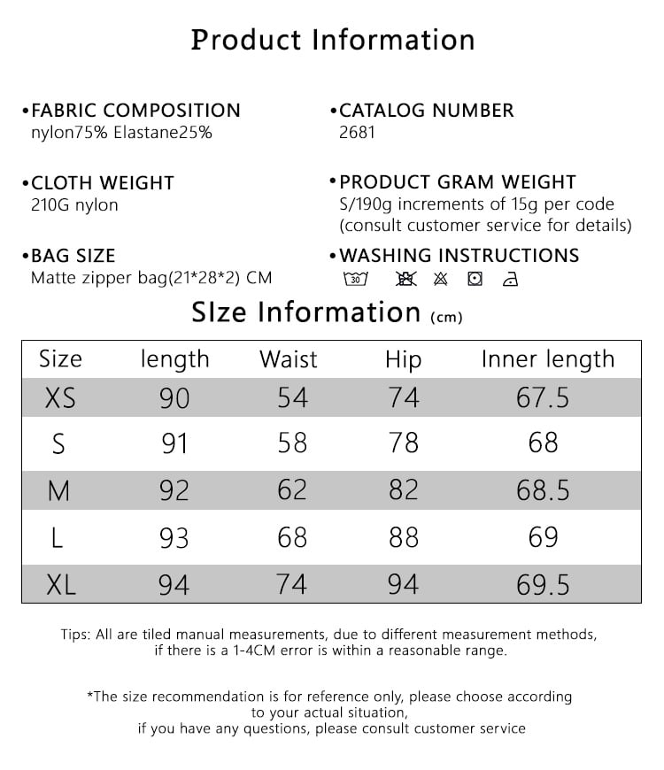 • Material:                                      90% polyester and 10% spandex